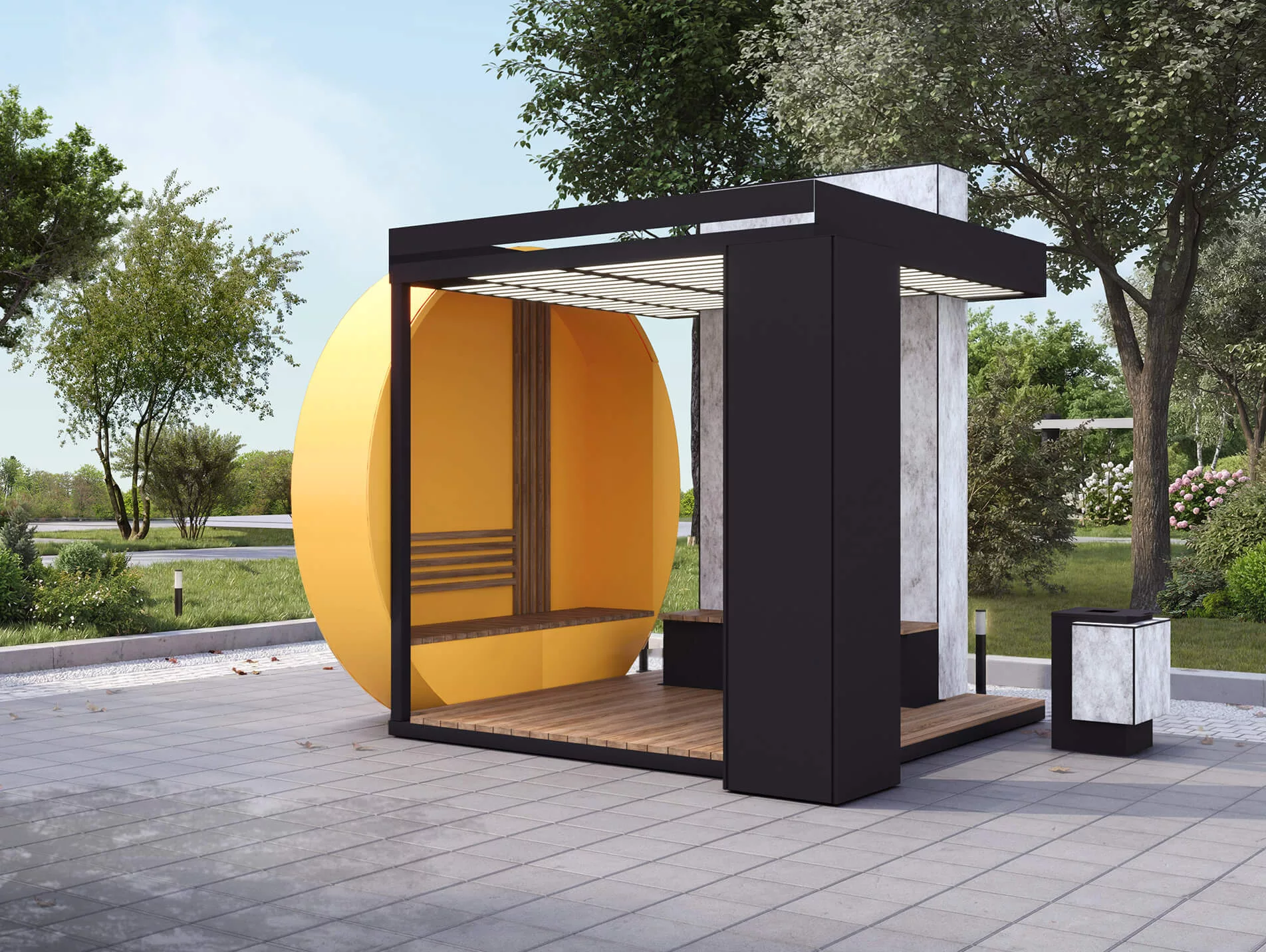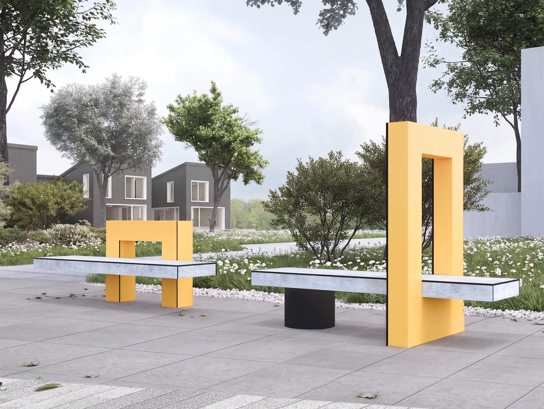 В основе коллекции — скамьи, качели, беседки и другие элементы благоустройства, построенные на взаимодействии простых фигур. Горизонтали, вертикали, круги и рамы складываются в выразительные композиции, которые не растворяются в пространстве, а формируют его ритм, структуру и характер. Каждый объект здесь работает сразу в двух регистрах: как удобный элемент среды и как визуальный акцент, способный собрать вокруг себя сценарий отдыха, движения или остановки.