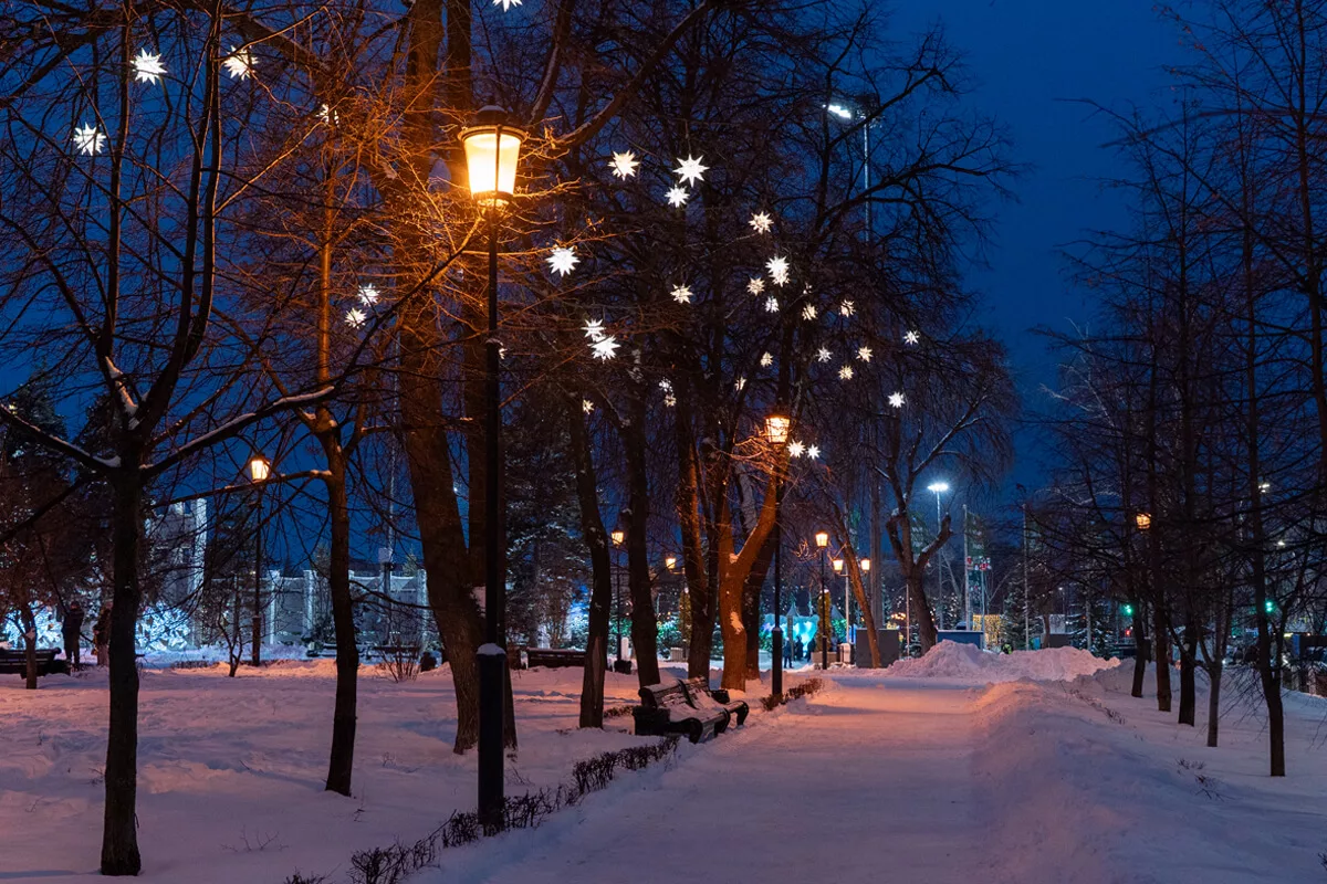 Оформление органично вписано в историческую застройку и городские бульвары: свет подчеркивает архитектуру фасадов, линии улиц и прогулочные зоны, создавая атмосферу спокойного вечернего движения. Инсталляции становятся естественными фототочками и визуальными ориентирами, не перегружая пространство, а аккуратно наполняя его светом и деталями.