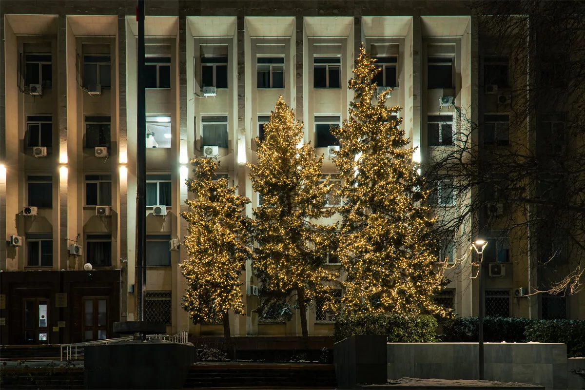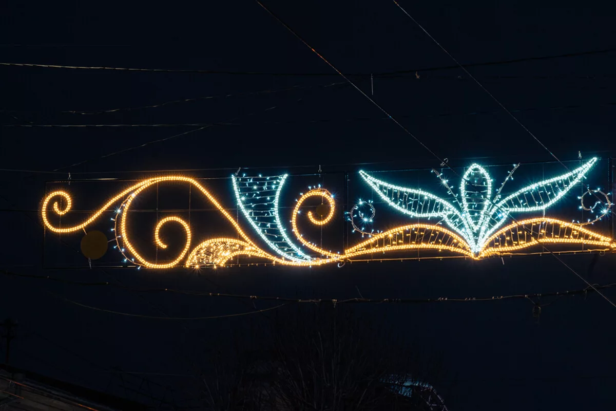 Новогоднее оформление Симферополя выстроено как масштабная световая среда, в которой город превращается в единый маршрут впечатлений. Здесь нет одного центра — праздник распределен по пространству, охватывая улицы, площади и пешеходные зоны, связывая их в непрерывный визуальный поток.